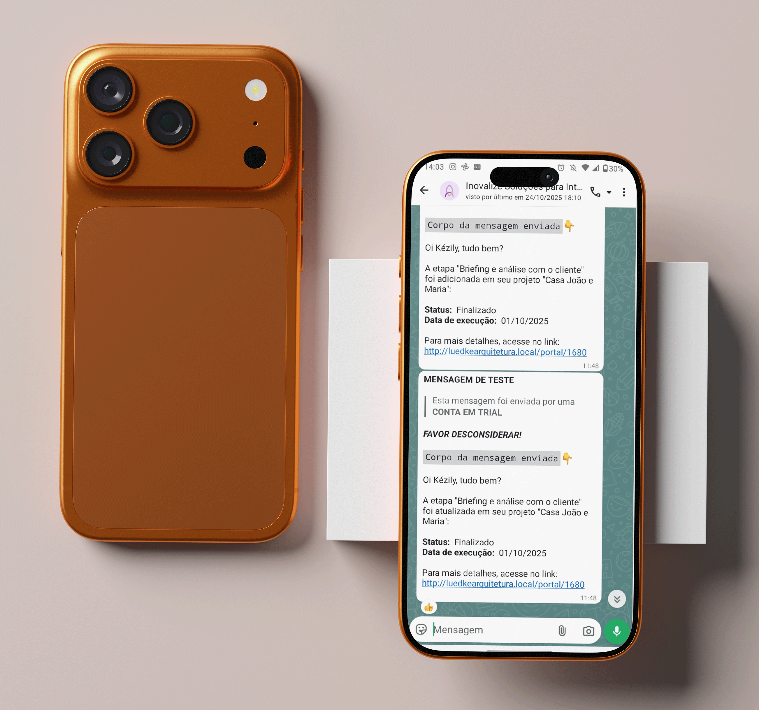 O Portal é totalmente integrado ao WhatsApp, garantindo que cada atualização da obra chegue ao cliente de forma rápida, clara e organizada. Voce fica sabendno sobre as etapas concluídas e avisos importantes diretamente no aplicativo, tornando todo o processo mais simples e acessível. Esse é o compromisso da Luedke: transformar a jornada da obra em uma experiência tranquila, transparente e fácil de acompanhar, do início ao fim.